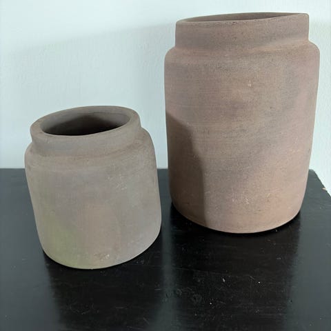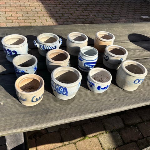 Cement urtepotte i grå farve. Rund form med tykke vægge og åbning foroven. Egnet til mindre planter, krydderurter eller dekoration indendørs eller udendørs. Robust materiale, der tåler almindelig brug på altan, terrasse eller i have.