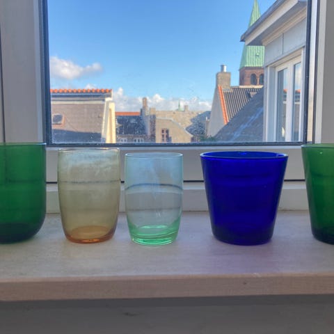 Glas, Fyrfads glas, Vintage, 2 stk fine vintage glas fyrfadslys holdere - eller små skåle - begge bemalet på ydersiden ( ikke af mig ! ) - sælges samlet. Se også tilhørende stor skål på en af mine andre annoncer.