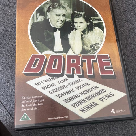 Dorte dvd film. Dansk sort-hvid spillefilm med blandt andre Katy Bødtger, Ib Schønberg og Johannes Meyer. Omslag med kort resumé af handlingen på bagsiden. Velegnet til samlere af danske klassiske film på dvd.