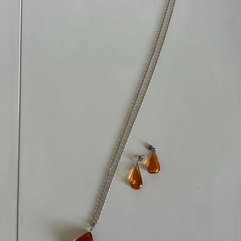 2 rav vedhæng og 1 kæde