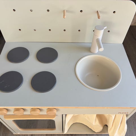 Rigtig pænt legekøkken fra Flexa. Med “ophængskroge” til køkkengrej.