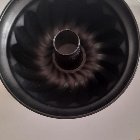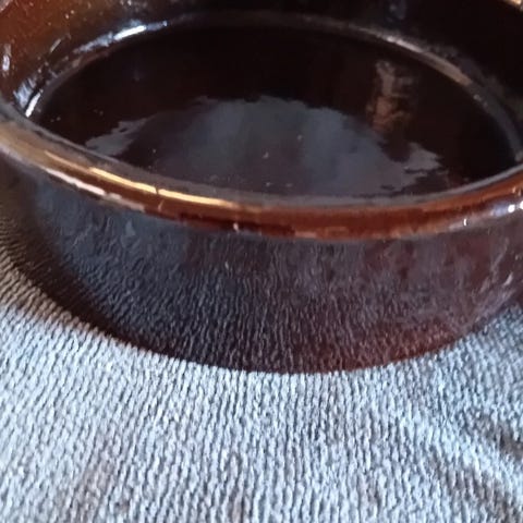 en brunglaseret flot keramisk buddinge form Bundet form. ca 24 cm i diameter ubrugt . kan hænges op . flot mønster og smuk brun farve.
