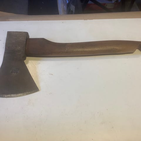Ret speciel Engelsk, gammel Ellwell Slimline øksehoved, som har fået et nyt Hickory skaft.
