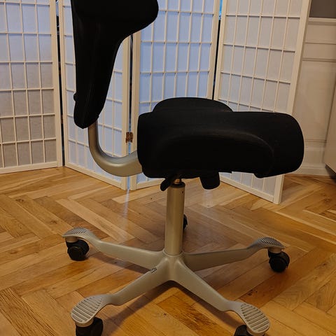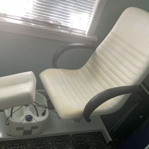 Sort klippestol brugt i frisørsalon.