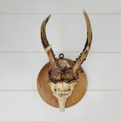 Jagttrofæ, ELG - smukt skulptur manuelt udskåret i Rosenkransen af originalt kronhjort gevir !!