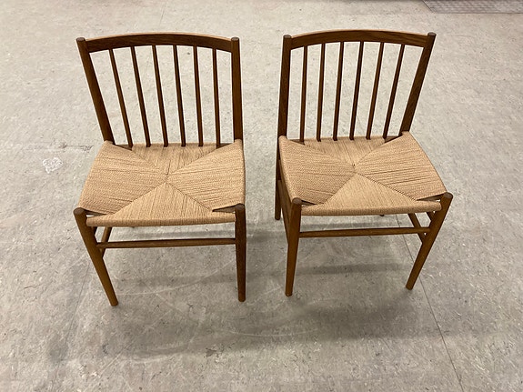 FDB Møblers J81 spisebordsstole i røget egetræ. Vi har 2 stole til salg, begge er i rigtig flot stand og ubrugte, dog kan mindre kosmetiske fejl forekomme.