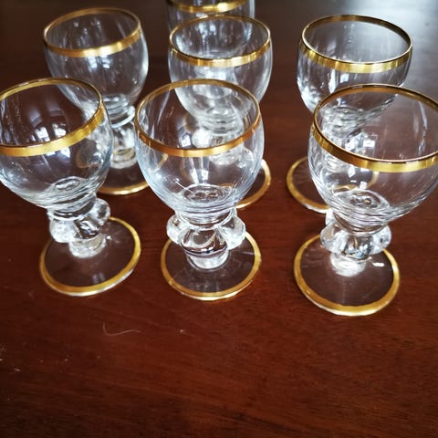 Glas, snapseglas, Gisselfeld fra Holmegård, "Gisselfeld" Snapseglas med guldkant fra Holmegaard.