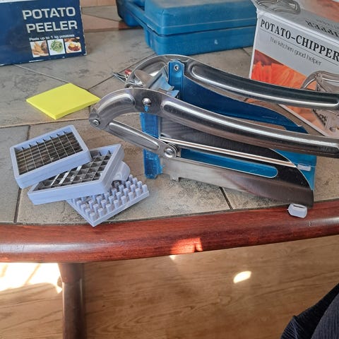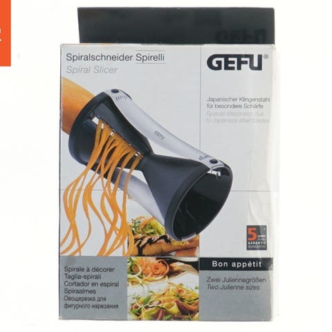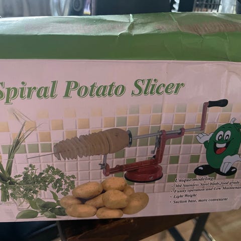 Skærer kartofler eller andre frugt og grønsager spiralt
