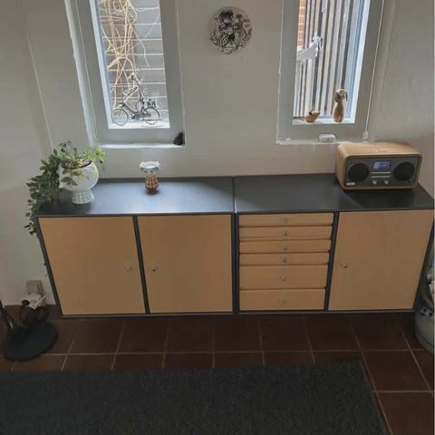 Montana skuffe og skuffe element med sokkel. Kan adskilles til to forskellige dele hvis ønskes. Sælges kun samlet. I mørkegrå