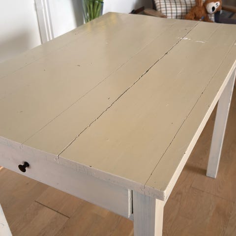 Smukt antikt bondebord med en skuffe i.