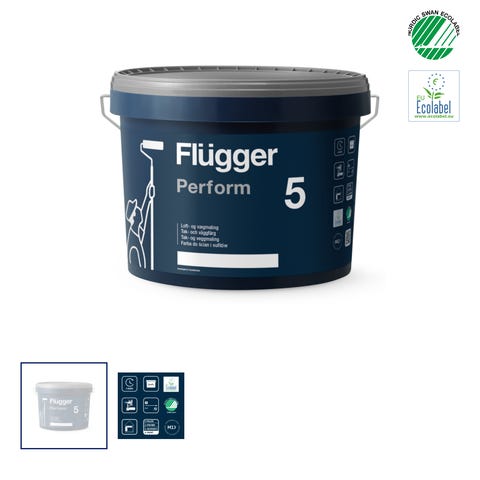 Flügger Flutex Pro 7 vægmaling i hvid. Malingstypen er velegnet til indendørs vægge og lofter.
