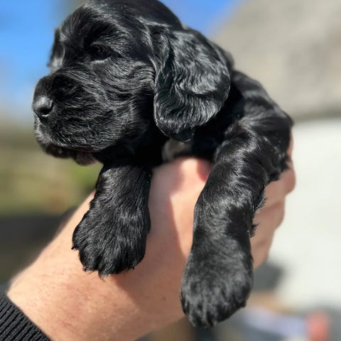 1 sort han engelsk cockerspaniel med stamtavle/ Anetavle. Han er nu 4 uger gamle, han har været reserveret, men de er sprunget fra inden besøgsdagen og han bliver derfor nu sat til salg igen.