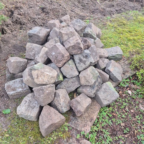 Ca. 160 stk. Brosten 18 x 18 x 24 cm. samt 8 stk. (4 hjørner) .