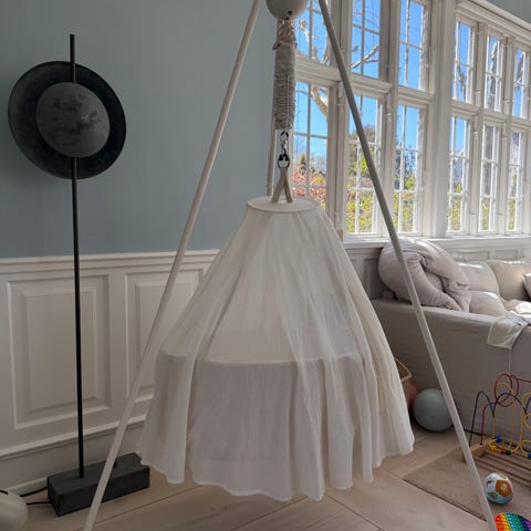 Vuggen er kendt for sit rolige, svævende design, som hjælper baby med at falde til ro. Den fylder minimalt og passer perfekt ind i de fleste hjem.