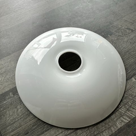 Louis Poulsen Poul Henningsen lampeskærm i hvid. Lampeskærmen er rund med centralt hul til montering på lampe. Egnet som reservedel eller udskiftning til kompatible PH-modeller fra Louis Poulsen, hvor størrelse og fatning passer til denne type skærm.