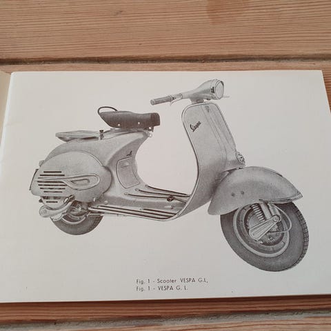 Vespa instruktionsbog til modellerne Vespa 125, Vespa 150 og Vespa Sprint. Hæftet indeholder tekniske illustrationer, gennemskæringer og beskrivelser af scooterens opbygning, vedligeholdelse og servicepunkter. Velegnet som reference for ejere eller til brug i forbindelse med reparation og restaurering af disse Vespa-modeller.o