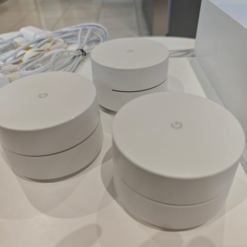3 stk. Google Wifi Mesh (AC-1304). Perfekte til at udvide signalet til alle hjørner. Virker som det skal.