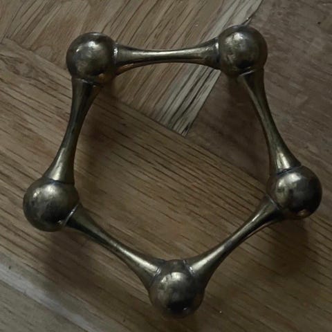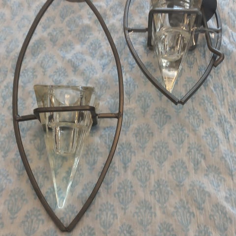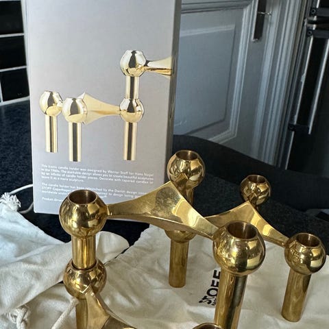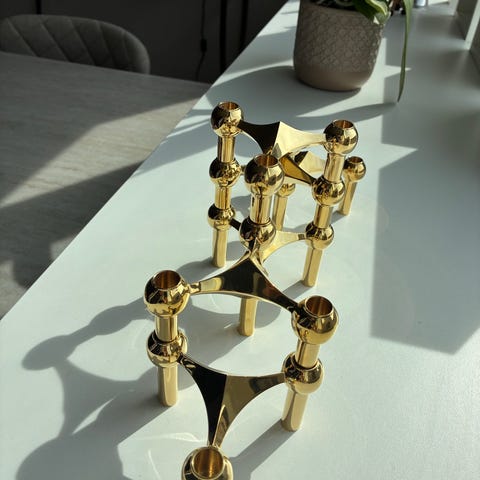 Samlet pris for to. Stagerne kan stables og sammensættes på forskellige måder. Hvert modul har tre lyspladser og runde kugleformede samlinger.