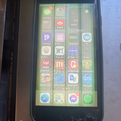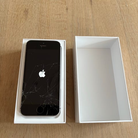 Apple iPhone SE (2-3 gen) smartphone med 64 GB intern hukommelse i sort. Modellen har fysisk hjemknap på forsiden og enkeltkamera på bagsiden. Enheden egner sig til almindelige smartphone-funktioner som opkald, beskeder, internet og apps, når den er fuldt funktionsdygtig. Skærm og kabinet fremstår med tydelige skader, som det ses på billederne, og telefonen kan derfor også være relevant som reservedels- eller reparationsenhed.