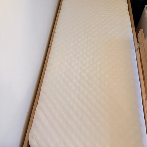 Der er 60 cm op til sidegavlen i sengen. Mål ses på sidste fotos.