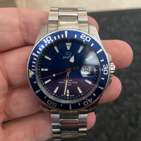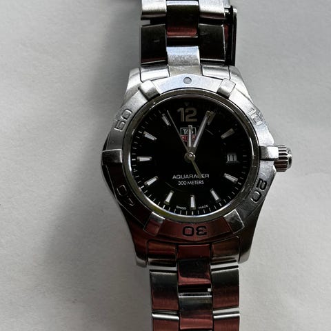 TAG Heuer Aquaracer herreur i rustfrit stål med blå skive. Uret har drejelig lynette med minutmarkeringer, datoangivelse kl. 3 og tydelige timeindeks. Lænken er i rustfrit stål med foldelås. Bagsiden af kassen er skruet og markeret med Aquaracer-logo samt angivelse af vandtæthed og modeloplysninger. Velegnet som klassisk dykkerinspireret herreur til daglig brug. Uret sælges fra Ørestad København hvor jeg arbejder efter nærmere aftale.