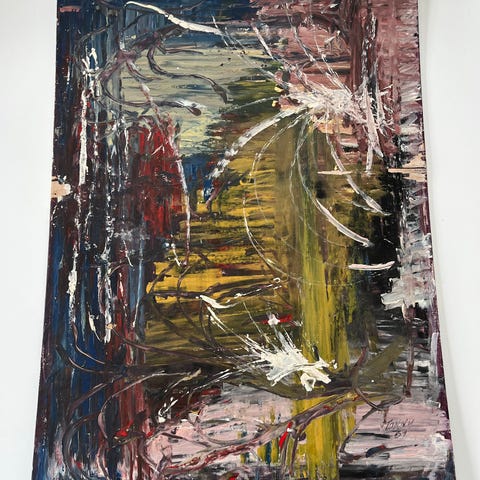 Mål 38 x 55 excl kartonen, som det er pålimet (har tidligere været indrammet)