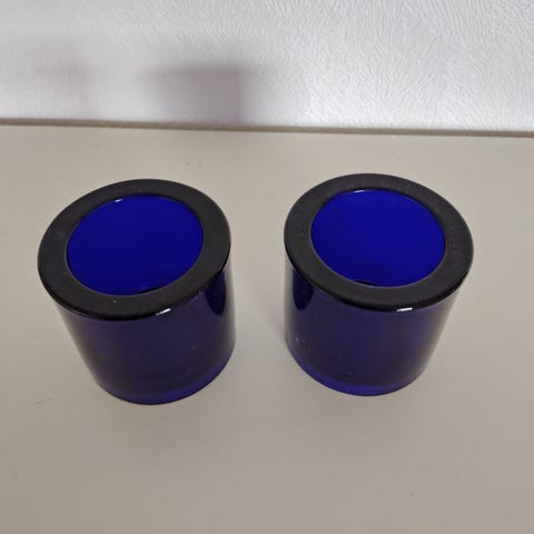 Graciøs form & farve 2 stk Klassisk køn BLÅ ultra blå glaspuster glasskulptur, krystalstage til alm. str. lys m. elegant køn diskos UFO form. Lækker vintage kvalitet.