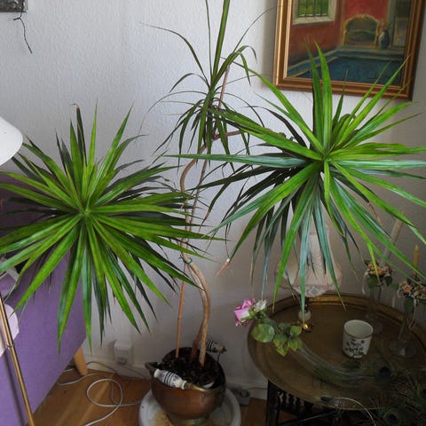 Stor Guldpalme måler 165 cm i højden. Plantet i medfølgende 35 cm potte med underspil (lys gråmeleret)
