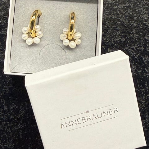 Annebrauner øreringe i forgyldt kirurgisk stål med krystaller.