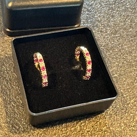 Er i forgyldt kirurgisk stål med krystaller. Ringen er besat med lyserøde krystaller hele vejen rundt. Smykket er unisex og kan bæres af alle køn.