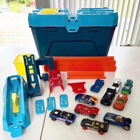 Lad bilerne flyve. Kan pakkes let sammen som en lille kuffert formet som et hjul. 8 små biler og en lidt større. Nem at samle og skille af igen.