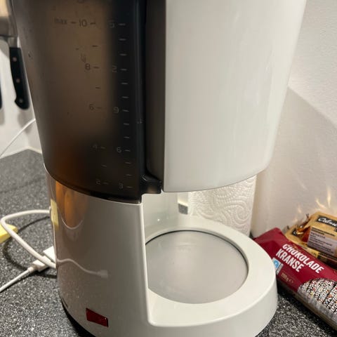 Kaffemaskinen er efterprøvet og laver dejlig varm kaffe. Alså i fin funktion.