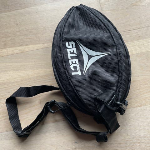 Medfølgende sort hummel boldtaske med lynlås og skulderrem, der gør det nemt at opbevare og transportere bolden.