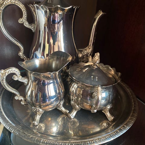 Sølvfarvet te-si med hank og perforeret indsats til brygning eller filtrering af te. Te-sien har et rundt sihoved med små huller og en flad kant, så den kan hvile på kanten af en kop eller et krus. Hanken gør det nemt at holde og løfte sien. Velegnet til løs te eller urter. Vægten på ca. 43 g fremgår af billedet.