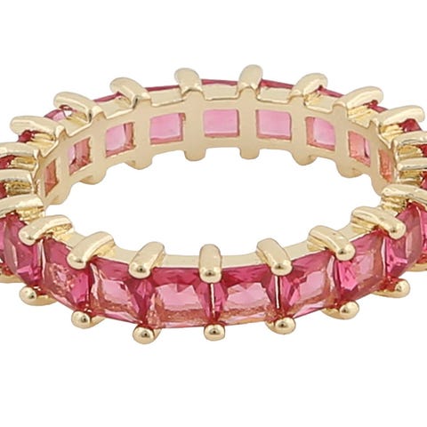 Ringen er forgyldt kirurgisk stål med krystal.