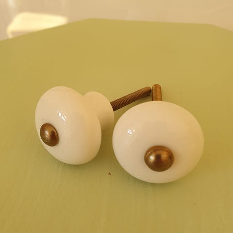 1 stk. stor hvid knop, den er stor nok til at bruge som et dørhåndtag.
