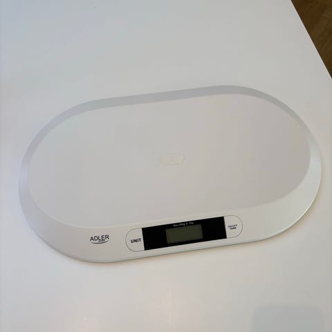 Alecto BC-50 baby- og børnevægt i hvid. Elektronisk vægt til vejning af spædbørn og mindre børn. Vægten har digitalt display og en buet vejeplade, der giver barnet støtte under vejning. Vejepladen er glat og kan tørres af med en fugtig klud. Egnet til brug i hjemmet til løbende kontrol af barnets vægtudvikling.