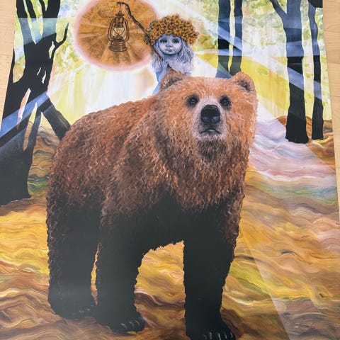 Smukt billede af Susanne Møberg - Hjertes vej - i flot sølvramme. Spirituelt, åndeligt, harmonisk motiv i blå og lilla farver. 69 x 88 cm.