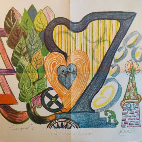 Plakat, Smuk og hyggelig gammel Heerup plakat, flytningen i båd, har noget patina bla. en lille flænge øverst, deraf den lave pris 45 x 36 cm
