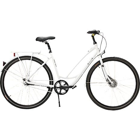 Sco Premium Cheer damecykel 28" i sort. Cyklen har lav indstigning, fastmonteret forkurv, bagagebærer, fulde skærme og støtteben. Udstyret med saddelpind med affjedring og komfortsadel. Velegnet til daglig transport i byen og korte til mellem-lange ture på asfalt og cykelstier.