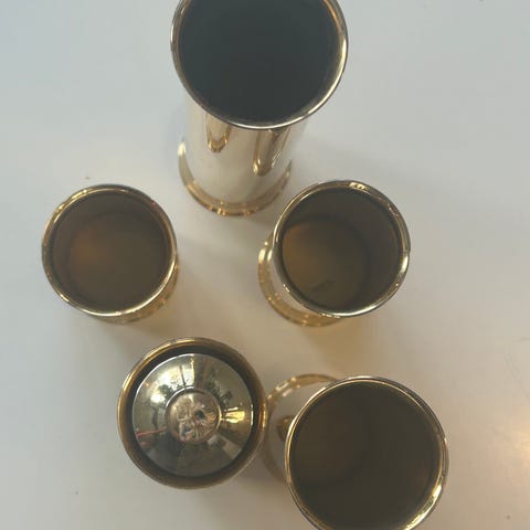 3 søjle messingstager, Til fyrfadslys. Ældre dato men meget velholdte og dekorative. Dansk design. Bør ikke pudses, da der står de er guldbelagte på mærkatet. Mærket Altecco.
