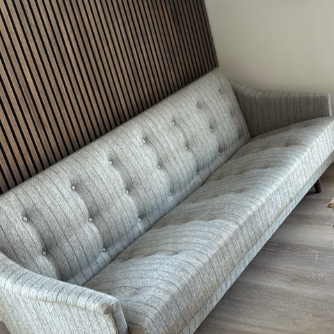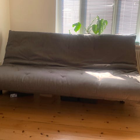 Seng/sofa i 90er stil. Gammel men næsten ubrugt. Med evt nyt betræk bliver det en ny seng. Incl sengetøjsskuffe