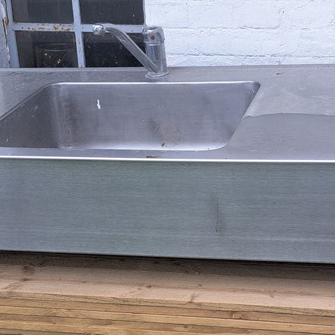 Rustfri stål bordplade 80x200cm m dobbelt vask på stel