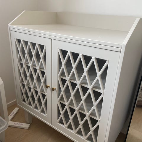 Sebra puslekommode i hvid. Kommoden har en aftagelig pusletop med tremmekant rundt om puslefladen. Under pusletoppen er der skab med to låger og indvendig hylde til opbevaring. Når pusletoppen tages af, kan møblet anvendes som almindelig kommode eller skab i børneværelset.