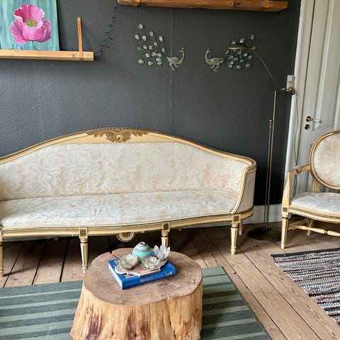 Smukt og komplet fransk salonsæt i Louis XV-stil — en af de mest elskede og kendte møbelstile fra 1700-tallets Frankrig.