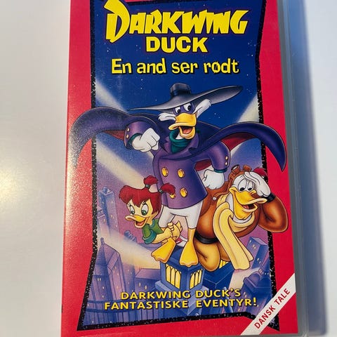 Disney Darkwing Duck Giganternes kamp VHS videobånd. Dansk udgivelse af tegnefilm med Darkwing Duck-universet på VHS-kassette i plastkassette. Velegnet til afspilning på VHS-afspiller og til samlere af klassiske Disney-tegnefilm på videobånd.