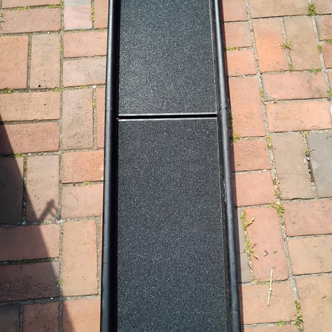 Foldbar hunderampe i sort plast. Egnet til hunde op til ca 40 kg. Kan være i bagagerum når det er foldet sammen.
