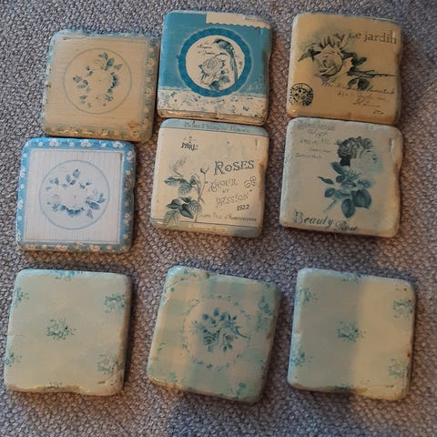 Et sæt med fire penselglasurer; the blues, blue dawn, glo-worm og light flux. Fejlkøb. Alm pris 500,- Lille smule brugt til testbrænding.