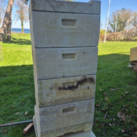 Træ rammer til bistader i Norsk Mål (NM) med hjørneklodser og tråd. De måler 366x260 mm (udvendige mål).