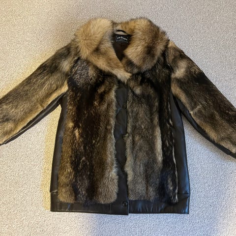 Smuk minkpels, syet på bestilling af buntmager. Lukkes foran med solide hægter. Lommer i siderne. Bryst mål ca 2 x 59. Længde ca 120.